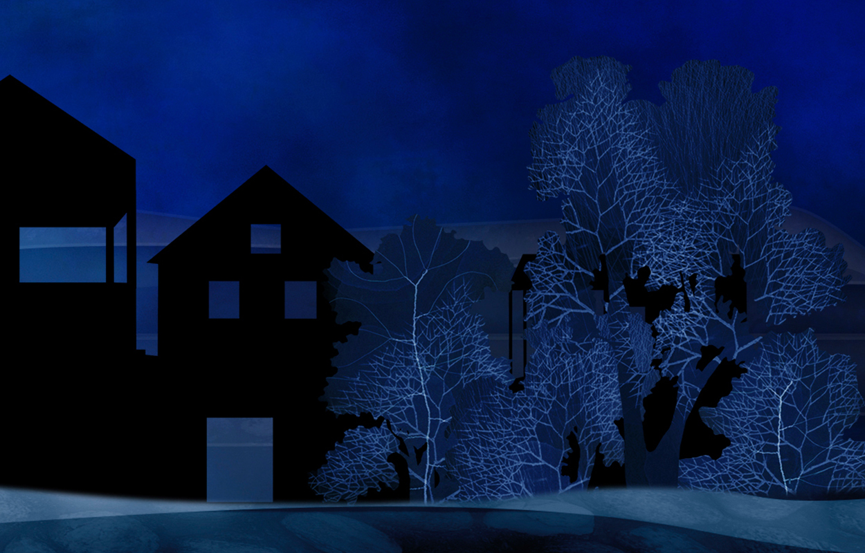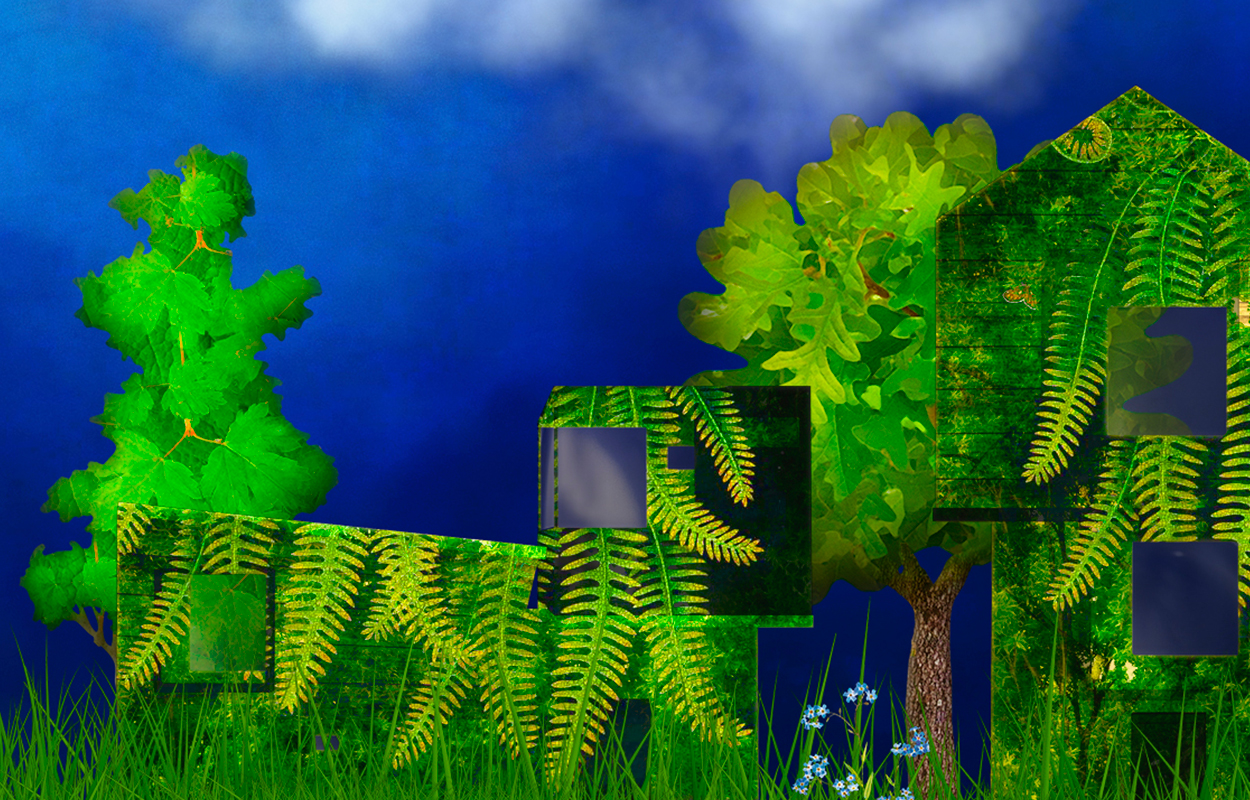 I due personaggi si muovono in una scena vuota dove due grandi schermi allineati evocano una stanza delle meraviglie: qui le loro fantasie, idee e progetti si colorano e prendono vita. L’architetta immagina case gradevoli e piene di luce, la giardiniera le ridisegna inserendo erba ed alberi e, piano piano, la loro città immaginaria cresce unendo le due diverse sensibilità.