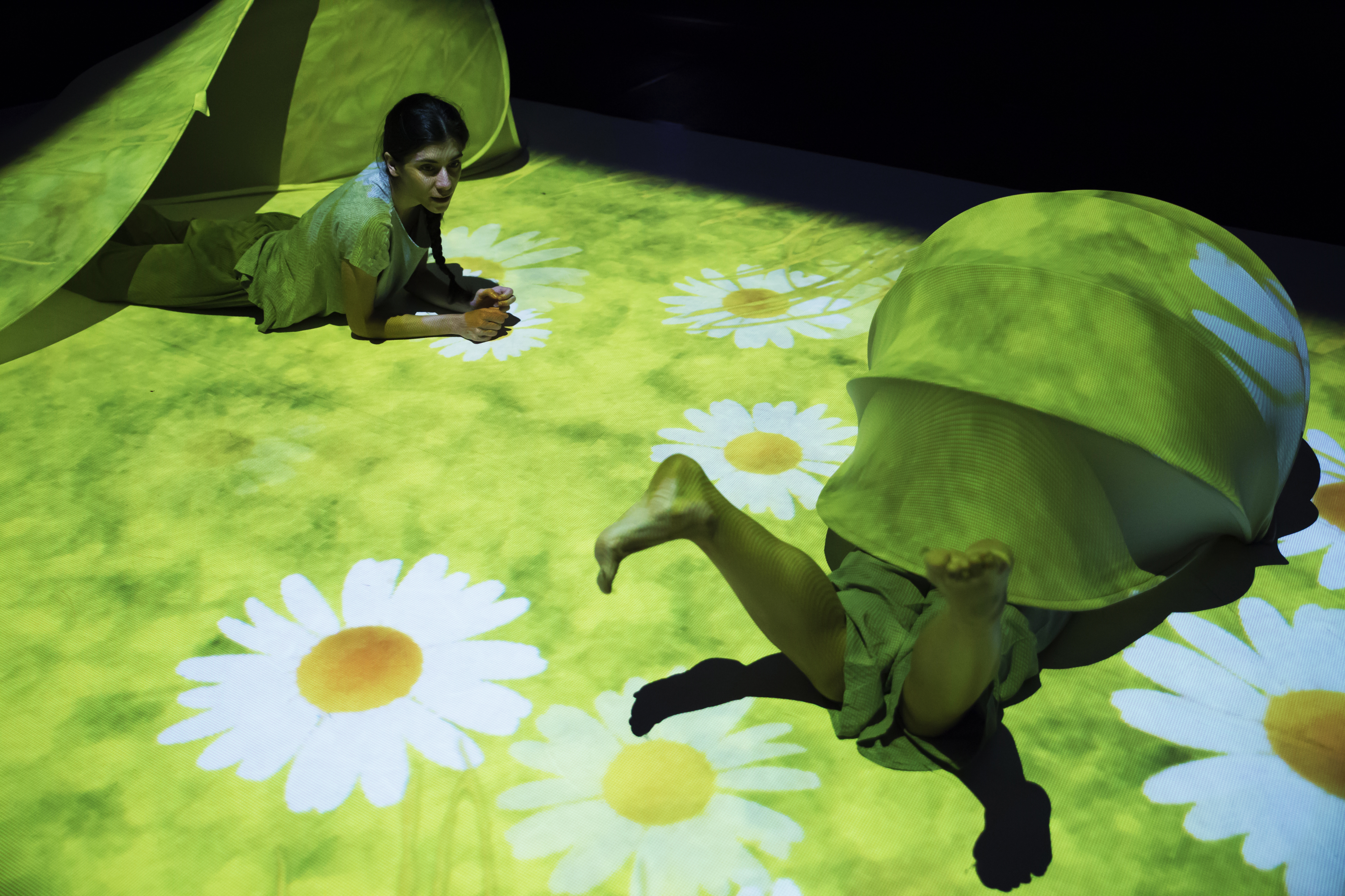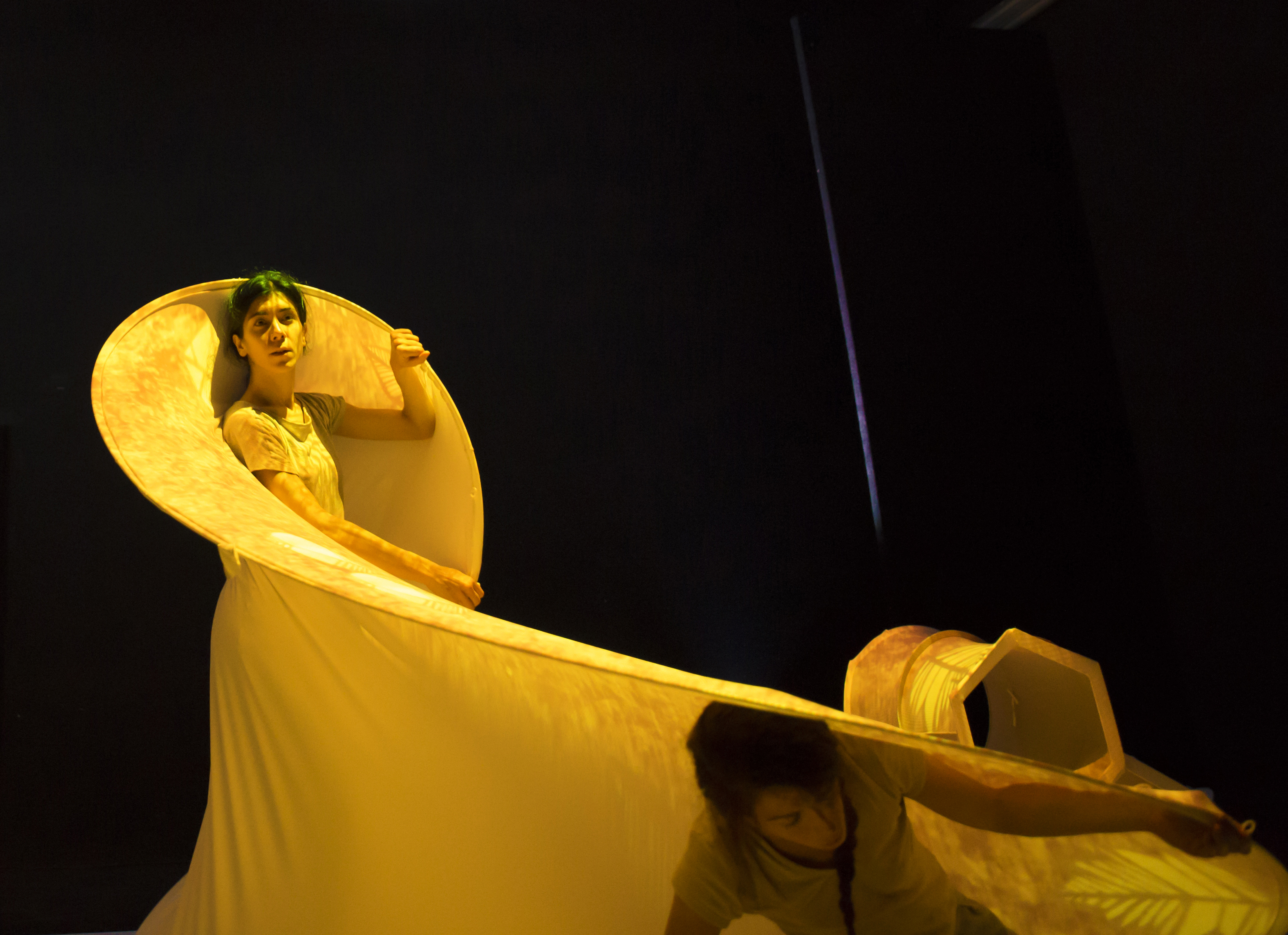Con il linguaggio della danza e il supporto di sculture di stoffa due personaggi in scena ricercano la loro possibile “tana” per affrontare in sicurezza il buio della notte, il freddo, la pioggia, il sole.